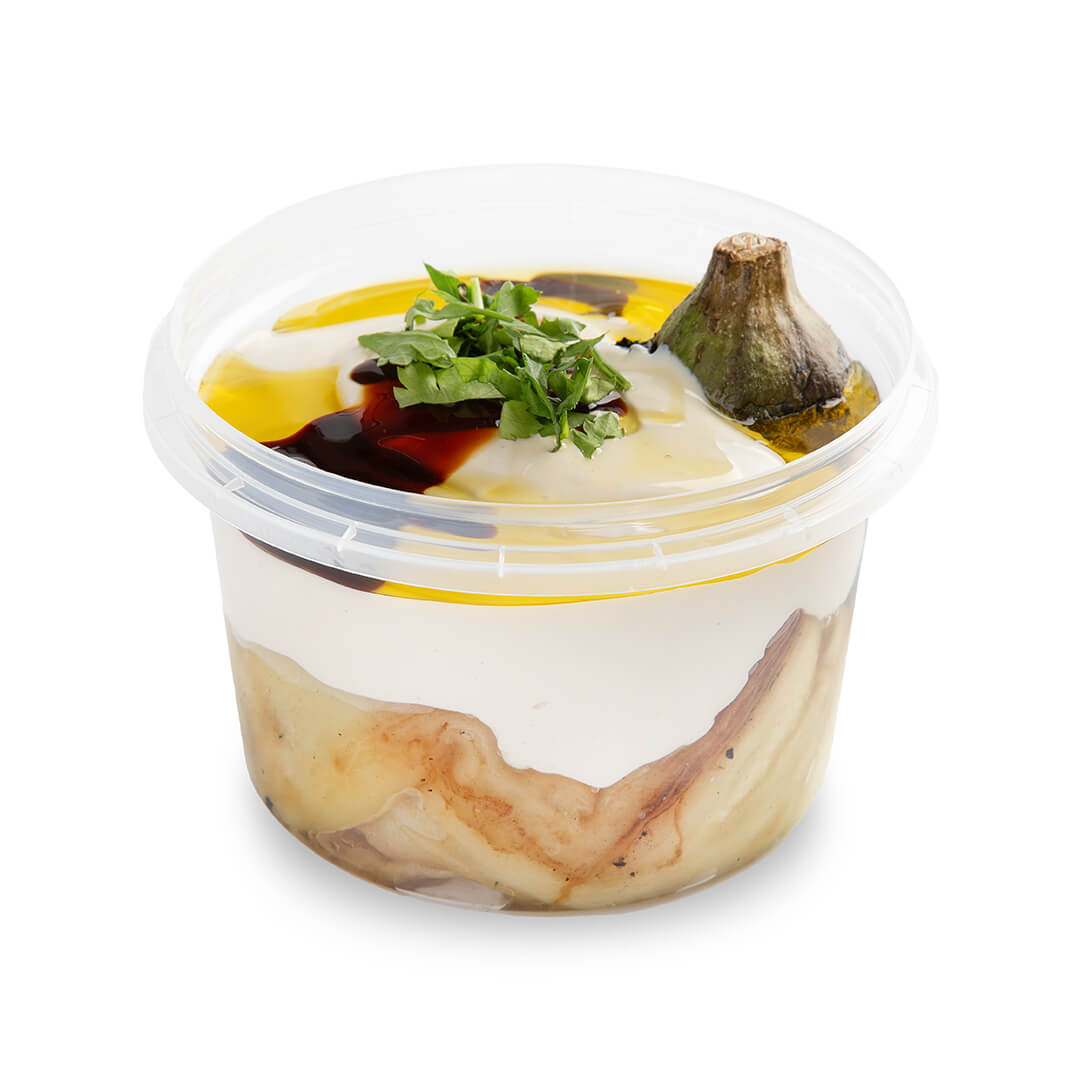 חציל שלם שרוף על האש עם טחינה.